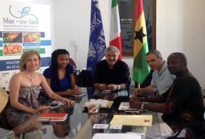 Lo stilista ghanese Stephen Martey in visita al Distretto I colori ed i suoni del Ghana saranno fra i protagonisti della quarta edizione (8-11 ottobre) di Blue Sea Land l’Expo dei Distretti del Mediterraneo, dell’Africa e Medioriente. Questa mattina hanno fatto visita al Distretto della Pesca il Console del Ghana a Palermo, Avv. Francesco Campagna, il fashion designer Stephen A. Martey e ti... |